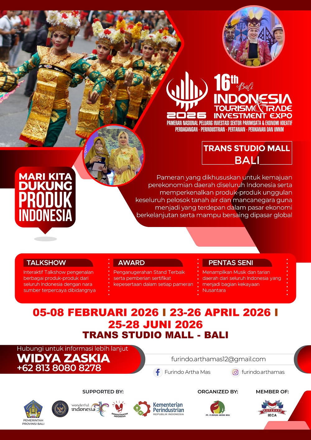 @furindo.arthamas akan kembali hadir di Trans Studio Mall – Bali, tanggal 05-08 Februari 2026, 23-26 April 2026 & 25-28 Juni 2026. Pameran ini akan diikuti oleh berbagai Instansi dari berbagai Prov/Kab/Kota di Indonesia.